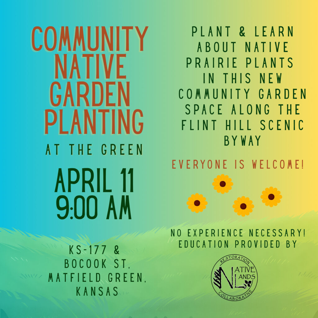 Plant and learn about native prairie plants in our new community garden space along the Flint Hills Scenic Byway.